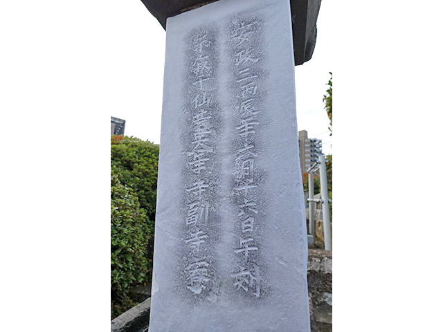 2025年10月23日(木)、稲城市の文化財担当の職員の方々とともに、これらの石造物の調査を実施しました。この日の調査では、刻まれている文字が判読できない石造物について、拓本を取る作業を行いました。拓本とは石造物の文字に紙をあて、墨を使って文字を写し取る方法です。履修生たちは慣れない拓本に悪戦苦闘しながらも、これらの作業は順調に進み、すべての文字を判読することができました。