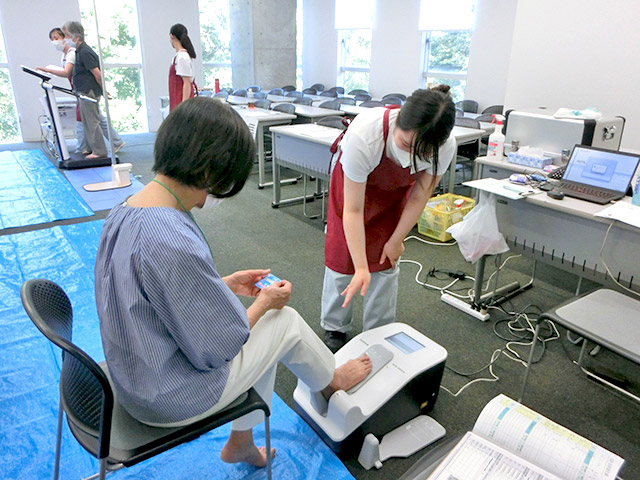 各種測定では、学生ボランティアスタッフのかんたま(管理栄養士/看護師のたまご:本学健康栄養学科/看護学科)の皆さんが活躍してくれました。