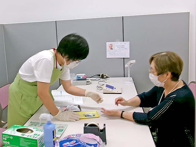 壮年期から高齢期の地域の方々を対象に、体脂肪率・筋肉量・骨密度・口腔機能検査などの身体測定や簡易血液検査、管理栄養士との個別相談を行いました。