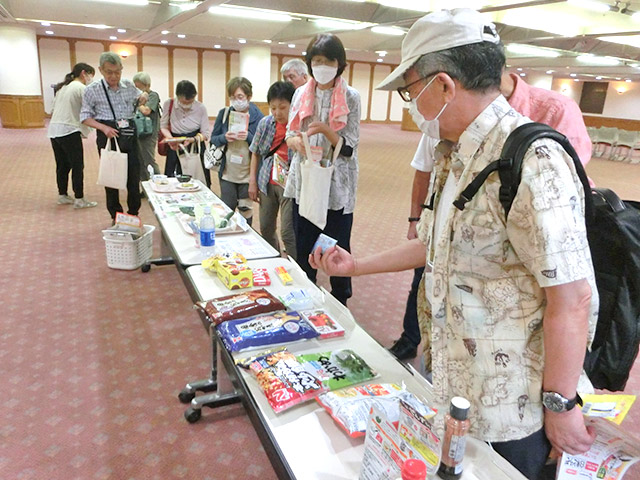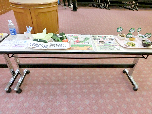 最後に、当相談室の管理栄養士から「自分が食べる食品の栄養成分を知ろう」をテーマに講話を行い、食品サンプルを見ながら栄養成分表示の見方や野菜摂取量の目安を学んでいただきました。