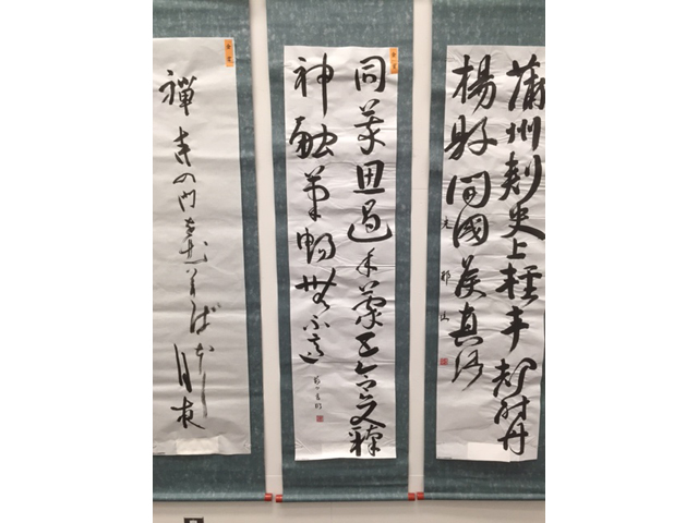 平成28年8月28日(日)豊島区民センターに於いて書教展の席書大会に参加して参りました。与えられた40分で半切大の大きさの紙(約135cm×約35cm)2枚に古典をそれぞれ臨書しました。慣れない環境の中で一生懸命集中して書きました。全日本書道教育協会賞を受賞した古屋和さんおめでとうございます。