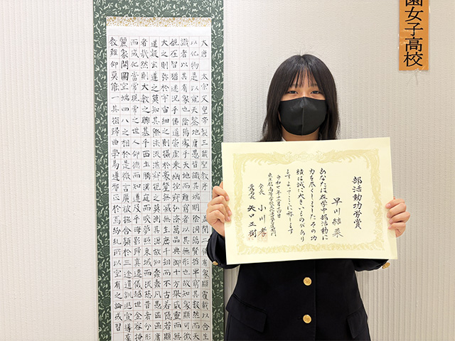部長の早川さんが部活動功労賞を受賞しました。