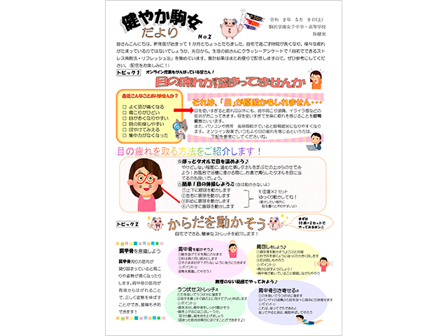 駒沢学園女子中学・高等学校の保健室では、健康に関する情報「健やか駒女だより」をお届けしています。