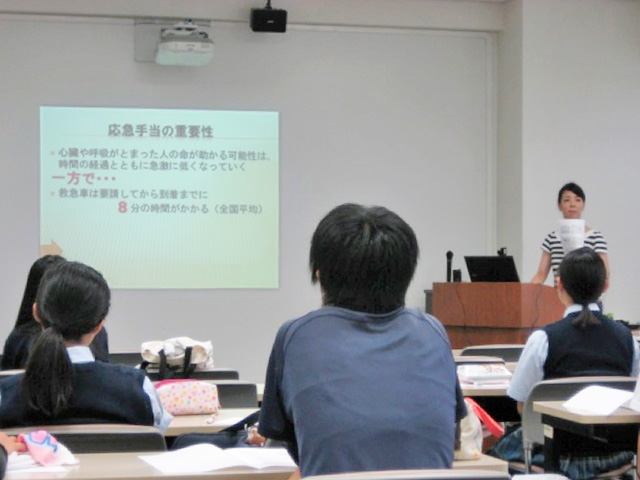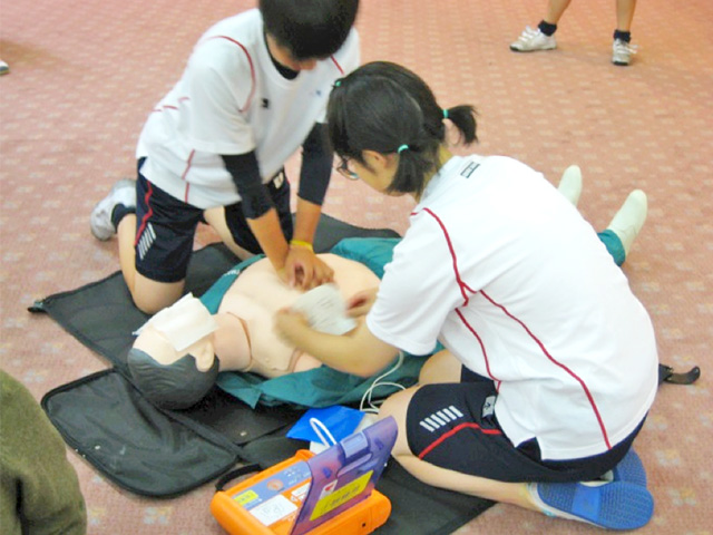 参加者は、もし、家族や友人など大切な人が目の前で倒れた時、自分はどうするか、何ができるかを考えながら、心肺蘇生法やAEDの使用法について学びました。