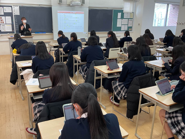 高校2年生のライフデザインの授業では、SDGsについて学びました。SDGs17の目標を確認し,心に残るメッセージをメモ「現状」をまとめました。その後未来年表から、10~20年後に起こりうる出来事について、クラスで話し合いました。物価が上がっても給料は上がらない日本のこれからをより良い方向に変えようと皆で誓い合いました。この生徒たちなら未来の日本を任せても大丈夫と確信しました。