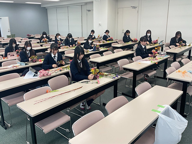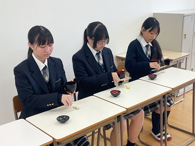 選択科目の「マナー講座」では、茶道・華道・マナーの3つを柱として、日本の伝統文化を総合的に学んでいます。