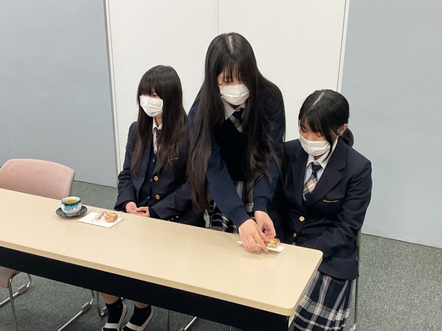 3回目は、「来客へのおもてなし」を体験し、実際にお茶とお菓子をお出しする練習を行いました。