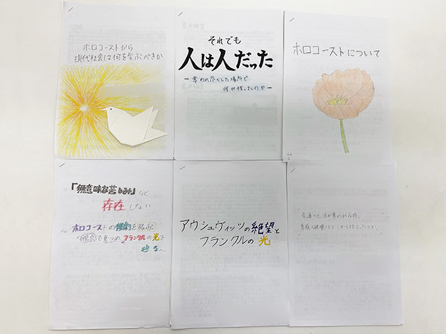ホロコーストでどのようなことが行われたかを知り、そこから「戦争とは何か」「人間の尊厳とは何か」について考え、レポートにまとめました。