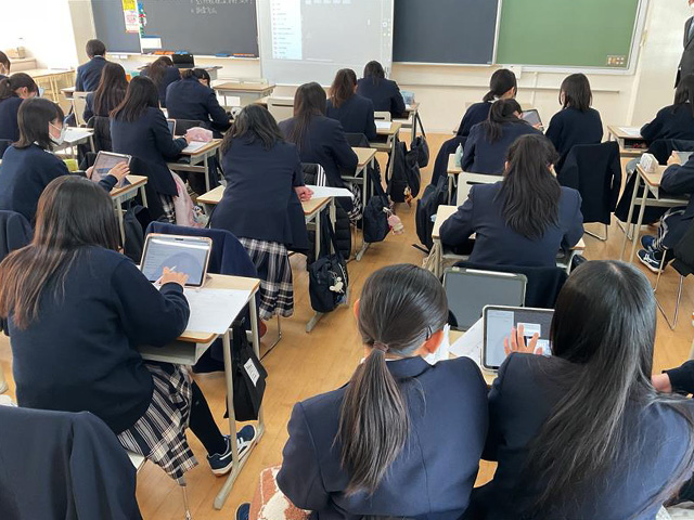 生徒たちは、その女性の生い立ちや経歴、どのような分野で活躍したのか、困難をどのように乗り越えてきたのかなどについて調べ、自分自身の将来と結び付けながら考察を深めています。