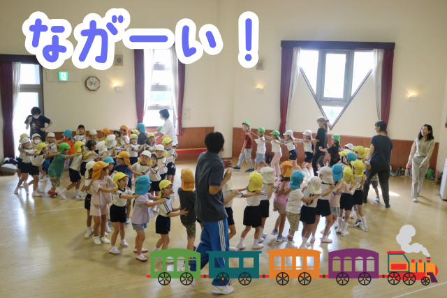 こんな長い列車に、先頭は向陽台保育園のお友だちです!