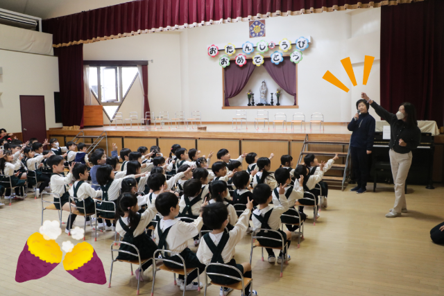 元気いっぱいのお返事♪ お誕生日のお友だちが入場です。
