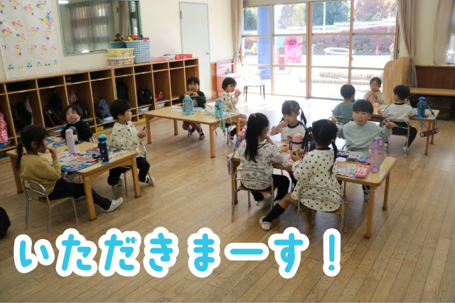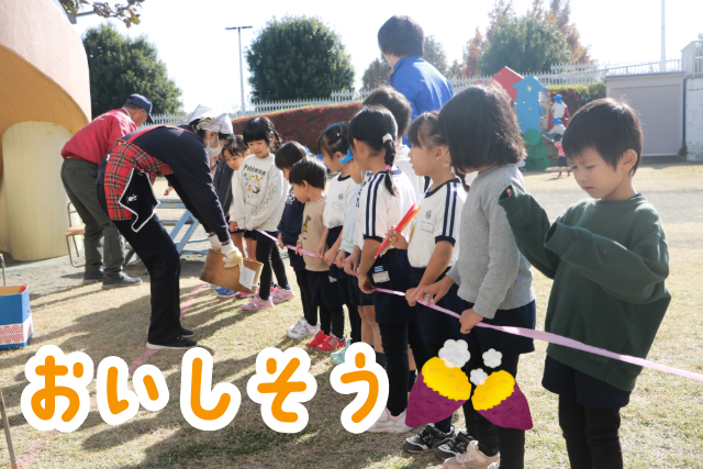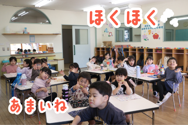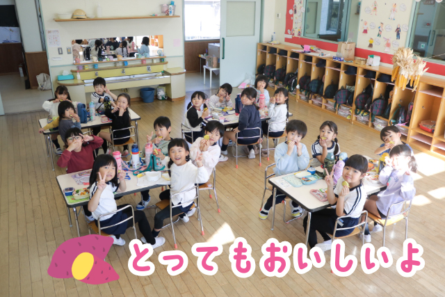年少組さん、熱々のふかしいもを召し上がれ