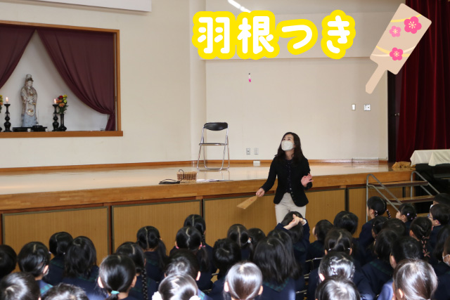 園長先生が羽根つきに挑戦!