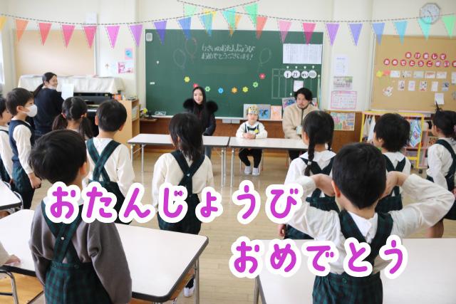 ホールに響き渡る大きなお返事! お誕生日のお友だちが入場♪