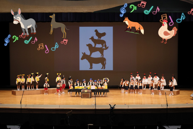 続いては、年中組さんの「ブレーメンの音楽隊」です🎺