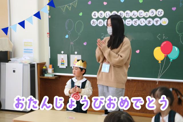 元気いっぱいのお返事でお誕生のお友だちが入場です♪