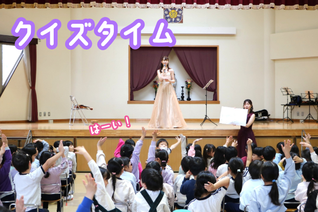 「今演奏した曲はある動物を表現しています。みんなは正解わかるかな~?」