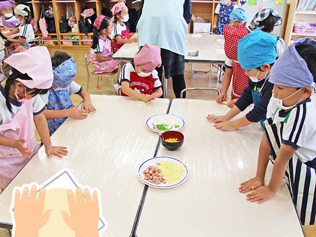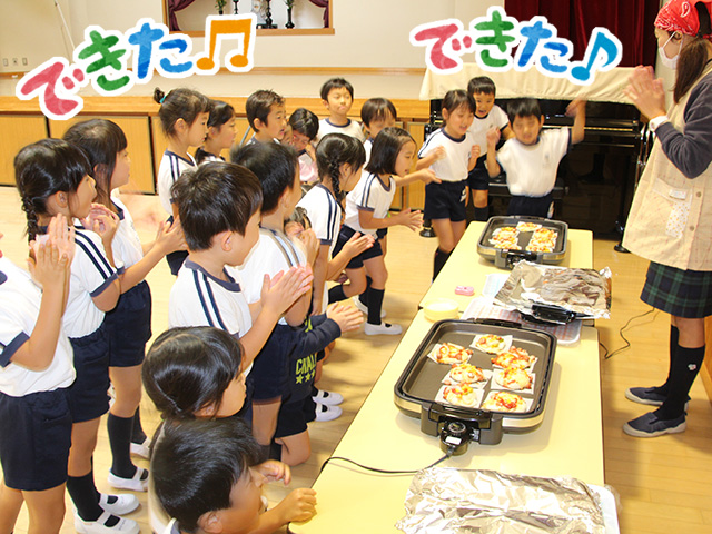 10月20日(金)年長組クッキング。ピザ作りを楽しみました。📷