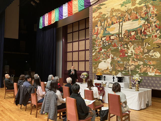 2月14日(土)10:15~11:30に、駒沢学園で所蔵する「大涅槃図」特別拝観が開催され、11名の方に参加いただきました。また、大学 佐々木俊道先生の解説により、お釈迦様の涅槃や「大涅槃図」についての解説がありました。