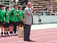 今回は直前まで雨が続き開催が危ぶまれていましたが、開始時刻には見事に空が晴れわたり、無事に教室を開催することができました。参加者は学年別に3つのグループに分かれ、それぞれ日テレ・ベレーザの選手から直接指導を受けました。照りつける日差しに真っ赤な顔で走り回る小学生たちでしたが、選手らはこまめに水分補給の時間をとり、基礎技術の反復からゲーム形式の練習まで、テンポよく工夫された指導を行ってくださいました。