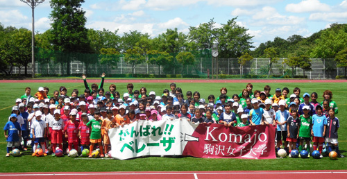 本学と日テレ・ベレーザは、平成22年3月より「パートナーシップ提携協定」及び「ユニフォームスポンサー契約」を締結しております。女子サッカーの普及並びに地域貢献の一環として、平成26年度「駒沢女子大学サッカー教室」を本学園グラウンドにて開催し、小学1年生から6年生の女子139名と日テレ・ベレーザ選手16名、寺谷真弓監督に参加していただきました。