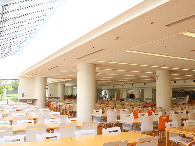 ランチタイム:12時10分〜13時00分。食堂は2箇所、お好みの場所で!