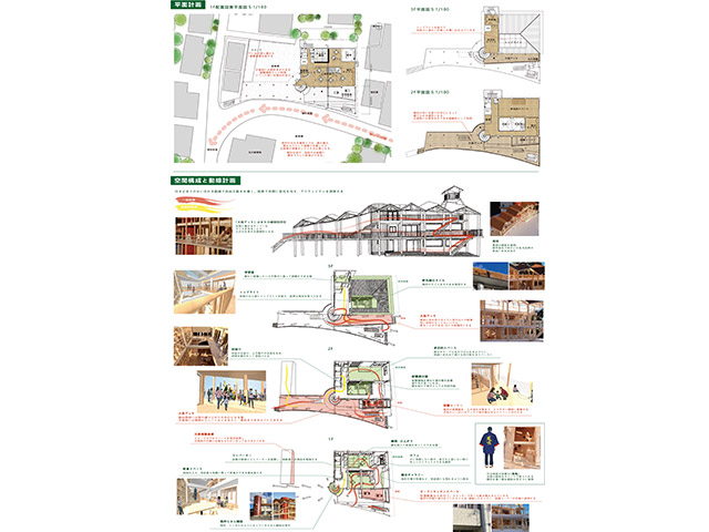 長野県諏訪地方の御柱祭の見所の一つ「穴山の大曲がり」。宮崎さんの地元であるこの場所に古くから建つ公民館を、地域に暮らす人々と観光客が出会い、交流する場所に再生した。既存の建物を生かしつつ、新たに加えた木造のデッキ空間が縁側のように街とインテリアを結び付ける。八ヶ岳の稜線に沿った折れ屋根を支える構造は、7年毎に通過する御柱を引くロープの緊張感を連想させ、祭りの熱気を呼び起こす記憶の拠り所となる。ぜひ実現したい提案である。