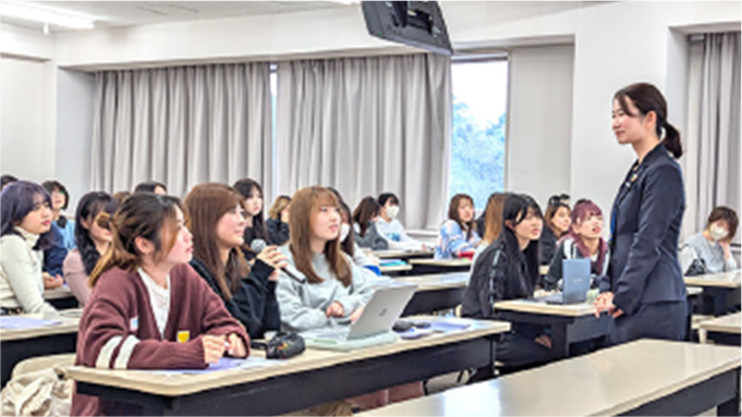 観光に関する基本的な内容を学修する「観光文化入門Ⅱ」。ホテルオークラや加賀屋など日本を代表する企業のプロによる授業が用意されていて、現場ならではのお話がとてもためになりました。