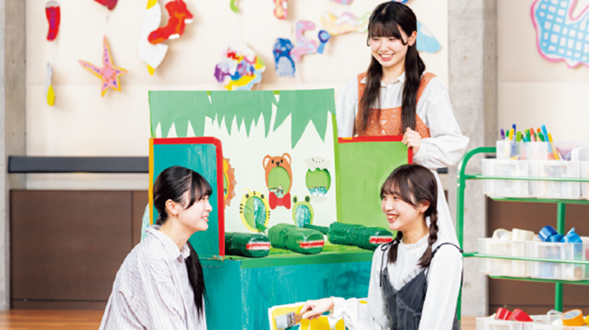 入学後の1年次前期から行う実習だけでなく、自身の探究テーマを追求できる「保育学ゼミ」や、最新の保育を学ぶ「現代保育実践の課題」など、本学独自の授業科目も充実しています。また、保育現場で活躍する卒業生から、実習や就職のサポートを受けられることも特色です。保育者養成校としての伝統を継承しながら、自分らしい保育者を目指すことができます。