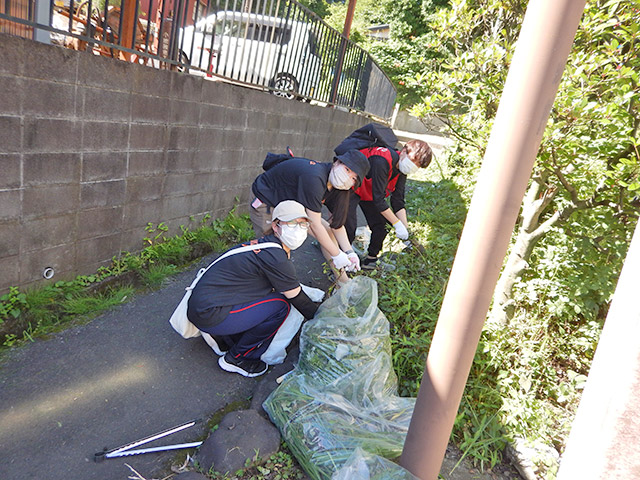 アクティ部としては、学校が所在する稲城市(坂浜地区)の環境美化と地域の方との交流、地域貢献を目的に、坂浜自治会の会長ご協力のもと活動してきました。