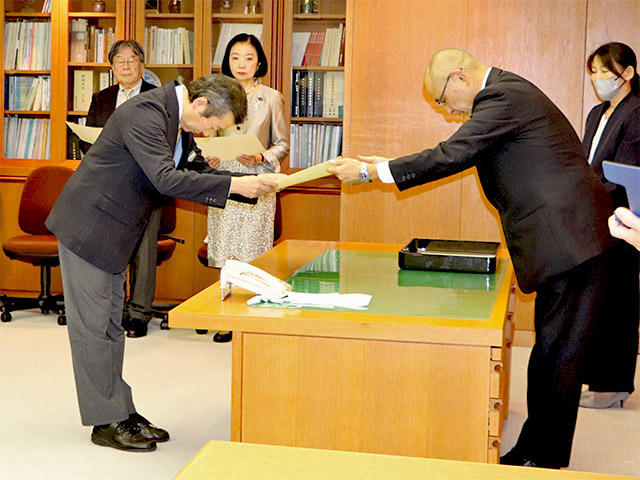 このたび、大学から元・人間総合学群人間文化学類 井戸桂子教授、元・人間総合学群心理学類 糟谷惠次教授、元・人間総合学群住空間デザイン学類 篠政行教授、元・人間健康学部健康栄養学科 末木俊之教授、元・人文学部住空間デザイン学科 太田清一教授に対して名誉教授の称号が授与されました。