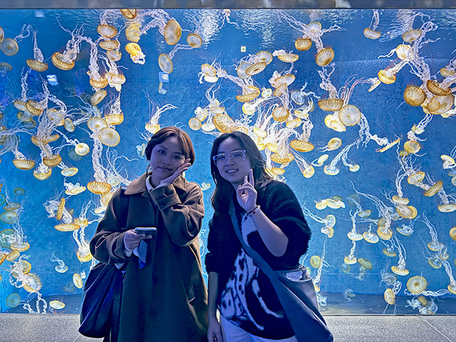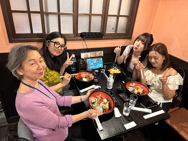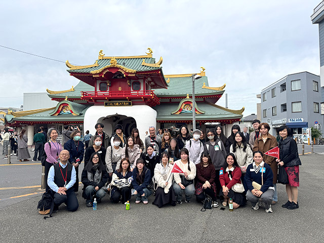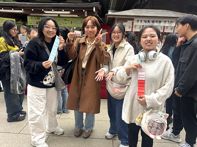 - 普段の授業や学校生活ではなかなかできない貴重な体験をすることができました。最初は、言語や文化の違いからうまく話せるのかと少し不安もありましたが、話しかけると、留学生の皆さんはとても明るくフレンドリーに話してくださり、すぐに打ち解けることができました。行き先では、ご飯を食べながら話をしたり一緒に写真を撮ったりと自然と会話が弾みました。そして、改めて言葉の壁を越えて協力することの大切さを実感しました。この遠足を通して、異なる背景を持つ人と関わることの楽しさや、コミュニケーションの大切さを改めて学びました。ありがとうございました。(日本人学生)