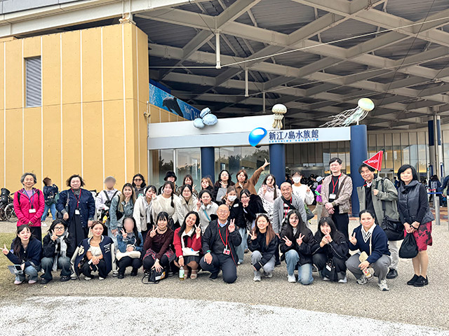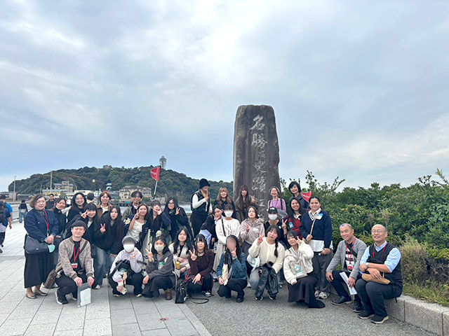留学生親睦会(遠足)を11月2日(日)に開催しました。今年は留学生12名、日本人学生14名、教職員名の計36名で江の島と新江ノ島水族館へ行ってきました。