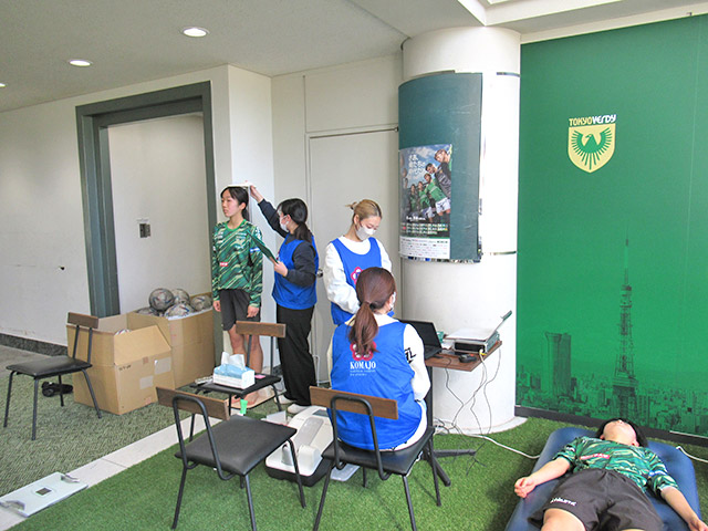 - 今回はメニーナの選手と久しぶりに接する機会となりました。お忙しい練習の合間でしたが選手の皆さまに測定の協力をいただき、スムーズに行うことができました。