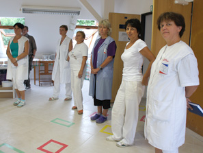 シンポジウムのテーマは「伝統と可能性」。チェコ、スロバキヤ、オランダ、ブルガリア、韓国、日本の陶芸家や芸術家、彫刻家、大学教授、駒沢女子大学 住空間デザイン学科教員の磯谷慶子ら16名が招聘され、ディスカッションやチェコ白磁に藍色の絵付けをしました。