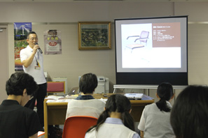 去る8月24日、夏休み最後のオープンキャンパスが開かれました。午前の部では『名作イスに座ってみよう!』と題した住空間デザイン学科の体験授業が行われ、大勢の高校生や同伴の保護者の方々にご参加戴きました。