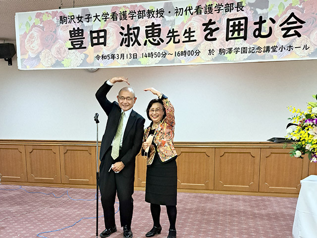 2023年3月13日、豊田淑恵教授のご退職にあたり「過去・現在・未来へ:私からの贈りもの、伝えたいことば」というテーマで最終講義が行なわれました。豊田先生は2016年に駒沢女子大学看護学部設置準備室から、看護学部開設にご尽力いただき、2018年からは初代看護学部学部長として学部の運営・教育・研究に携わってこられました。