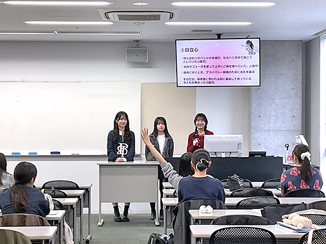 「その姿はどんな時に見られましたか?」「子どもたちはどんな反応でしたか?」等々、積極的に質問しあい、子どもたちの成長を理解していく姿が見られました。学生たちがそれぞれ実習で得た貴重な経験を振り返ることにもなりました。