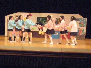 今年度の発表会は、こうした授業の延長線上にあって、演じる表現・動きの工夫を中心としながらも、シナリオ制作、大道具・小道具・衣装の制作、招待状・プログラムの作成、司会進行など、各人の持ち味を生かしながらそれぞれ役割を分担してその運営に当たります。