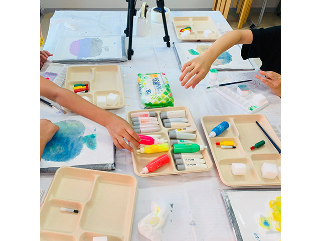 稲城市立iプラザ主催の児童青少年イベントで、保育科の造形担当 西村愛子先生が活動しているアートユニット mingle lingo (みんぐるりんご) が、年に4回「アートな工作」の講師を担当しています。今年度、第2回目となる8月30日(日)の活動では、新型コロナウイルス感染症拡大防止のため、通常の半分以下の定員で実施しました。